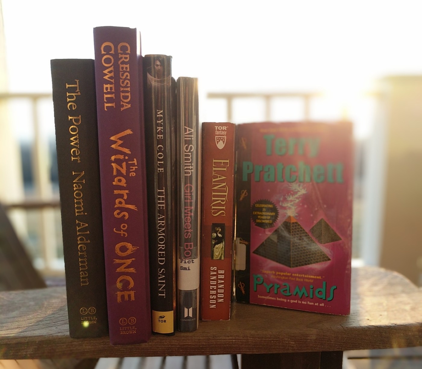 February was a great month of reading and a less than great month of book reviewing! But I’ll be changing that soon. I have a tall stack for this coming month, but I’m pretty confident I can get through all of it at the rate I’ve been reading at! I’m picking up two books that Indiana loved — The Power by Naomi Alderman and The Wizards of Once by Cressida Cowell, both of which I’m already partway through and enjoying quite a bit. Ali Smith’s Girl Meets Boy is also on tap for this month — a modern retelling of the myth of Iphis. Our book club is reading Elantris by Brandon Sanderson, which I’m of course extremely excited to finally read. I only have a few more Cosmere books to go after this! Myke Cole’s latest, The Armored Saint, is his first foray into fantasy, and I’m very hopeful for this one. And finally, I’m reading Pyramids by Terry Pratchett, my 7th Discworld book. It’s a fantasy-heavy month, and I’m looking forward to everything on my list!