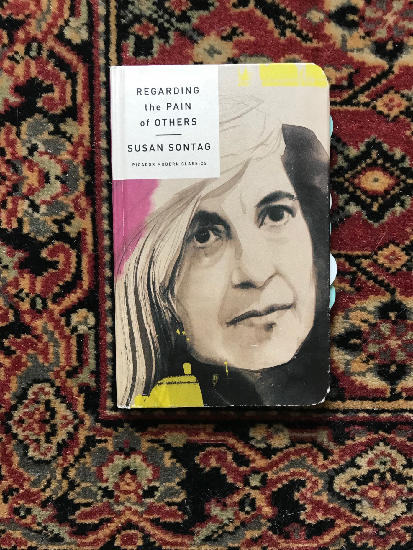 In Regarding the Pain of Others, Sontag dives into images of war and how for years and years (perhaps to a certain degree even today) it was believed that if everyone could see the ugliness of war, could see the death and the pain that war causes, wars wouldn’t exist.