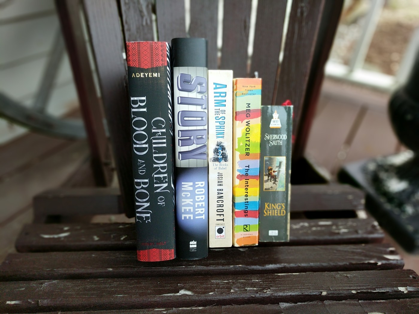 I had an ambitious list for March, but I got through it all. This past month was almost all fantasy. April is looking a bit more balanced — I even have a nonfiction pick with Robert McKee’s Story. I have been meaning to read this one for years. It’s almost been on my TBR shelf for a decade by now. Tomi Adeyemi’s Children of the Bone sounds like it’s going to be a big one for this year — It’s been on the NYT Bestsellers list for three weeks now, and I think it will hold its place for a while. I’m already a hundred pages into King’s Shield by Sherwood Smith, and so far it’s been filled with moments I’ve been waiting for for two books. I’m also enjoying the start of Meg Wolitzer’s The Interestings. I’ve somehow never read anything by Wolitzer, but I already see why she’s so celebrated. And finally, I’ll be diving back onto the Tower of Babel with Arm of the Sphinx by Josiah Bancroft. Only five books this month, but they’re all fairly hefty, and I’m looking forward to all of them.