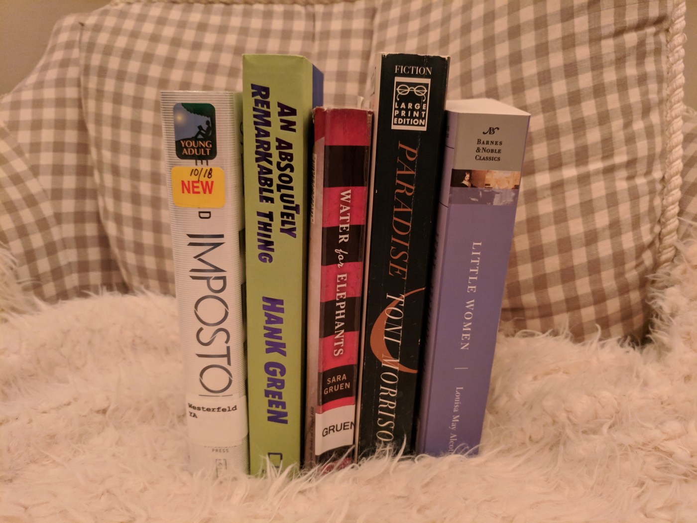 I’m planning on reading Every Day by David Levithan, Little Women by Louisa May Alcott, An Absolutely Remarkable Thing by Hank Green and Imposter by Scott Westerfeld. I’d also like to finish Shirley by Charlotte Bronte, which has been taking me forever to read for some reason, and make headway on The Labyrinth of Spirits by Carlos Ruiz Zafon.